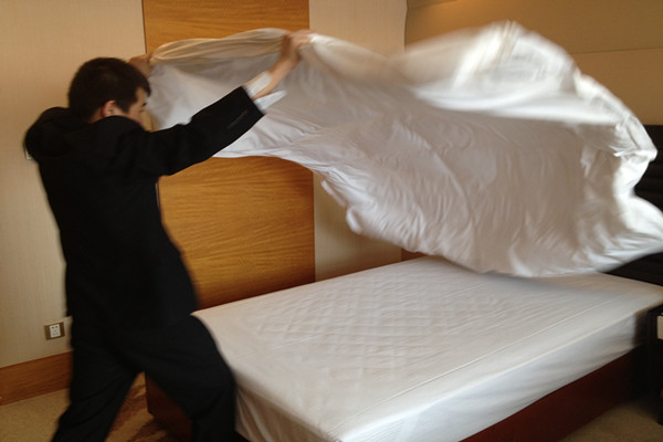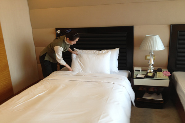 2013年4月11日14時,第三屆“勞動之星”職業技能競賽實踐操作由江泉城承辦的中式做房在江泉城客房部7樓正式啟動。本次比賽共計20名參賽選手,集團公司對比賽全程進行了現場監督。繼今日的比賽項目之后其他工種的比賽也將在近期陸續展開。