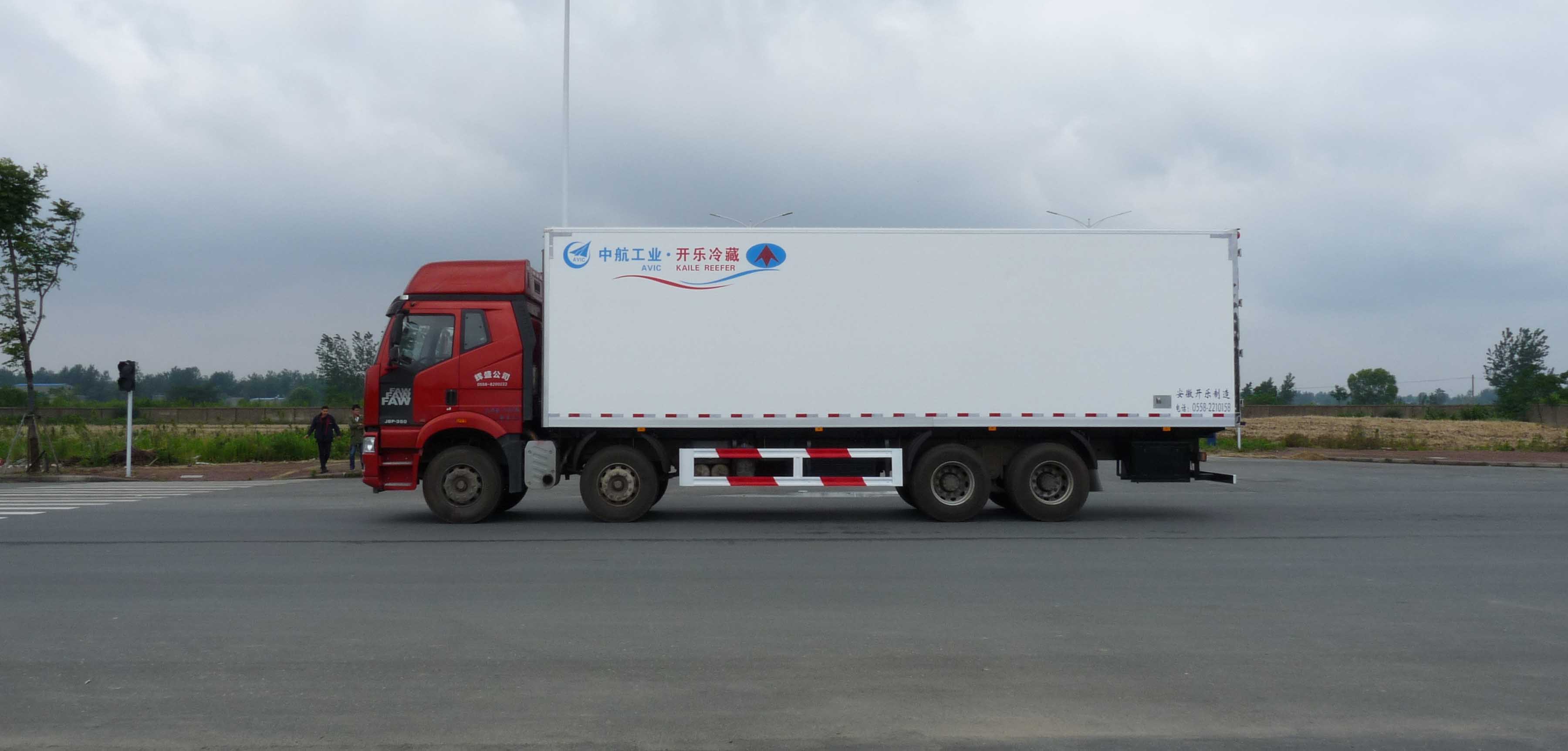 6. 開樂牌冷藏車引進(jìn)國內(nèi)外先進(jìn)技術(shù)消化吸收為一體,具有車身更輕,強(qiáng)度較高、安全性好、節(jié)能環(huán)保、外形美觀、裝卸更方便、低溫溫控恒定、低溫運(yùn)輸效率高,是您中短途冷鏈物流運(yùn)輸?shù)牟欢x。